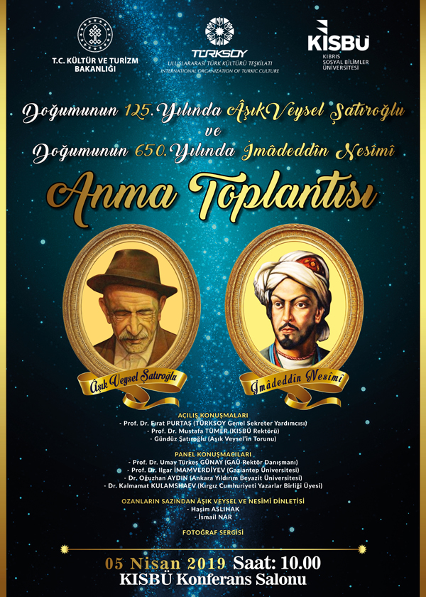 KISBÜ, TÜRKSOY, TC Kültür Bakanlığı'nın himayelerinde doğumunun 125. yılında ünlü Türk Ozan Âşık Veysel ve doğumunun 650. Yılında Azerbaycanlı ünlü şair İmâmeddin Nesîmî anılacak.