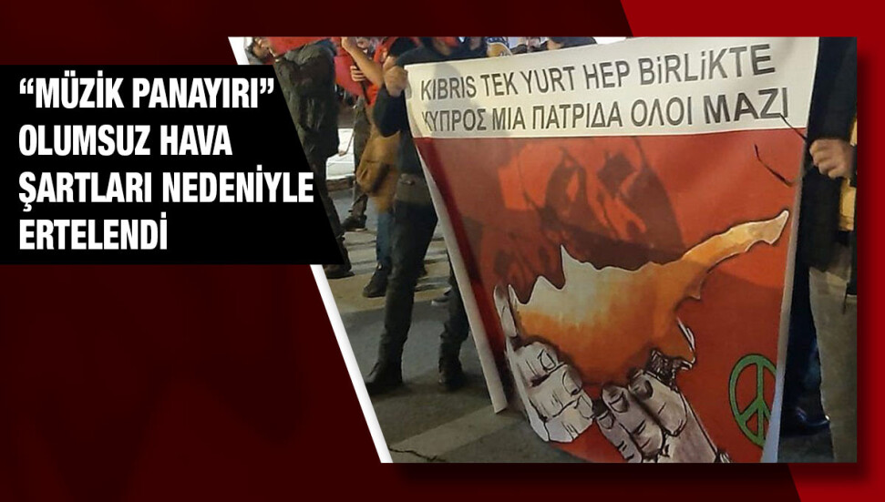 “KIBRIS TEK YURT HEP BiRLiKTE- ΚΥΠΡΟΣ ΜΙΑ ΠΑΤΡΙΔΑ ΟΛOΙ ΜΑΖΙ” grubu tarafından organize edilen “Müzik Panayırı” etkinliğinin, yarın için öngörülen olumsuz hava koşulları nedeniyle 27 Kasım Cumartesi gününe ertelendiği duyuruldu.
