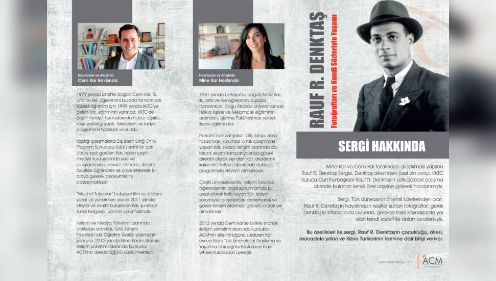 Daha önce Ankara, Antalya ve Ercan Havalimanı’nda açılan sergi, Mine Kar ve Cem Kar tarafından, Denktaş ailesinin izni ile KKTC Kurucu Cumhurbaşkanı Rauf R. Denktaş’ın özel arşivine girilerek hazırlandı.