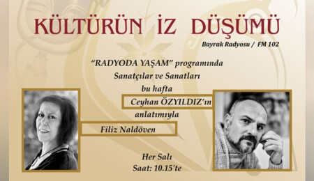 Bayrak Radyosu’nda, Radyoda Yaşam isimli programda, haftada bir salı günleri saat 10.15’te yayınlanan Kültürün İz Düşümü isimli bölümde bu hafta (26 Temmuz Salı) Şair Filiz Naldöven tanıtılıyor. Kültürün ajandası ile başlayan bu bölümde Kültür Dairesi Kültür Merkezi Yönetmenleri Pervin Aremek ve Ceyhan Özyıldız Kültür Dairesi’nin etkinlikleri hakkında bilgi verip ülke sanatçılarını tanıtarak eserlerinden örnekler paylaşıyorlar.