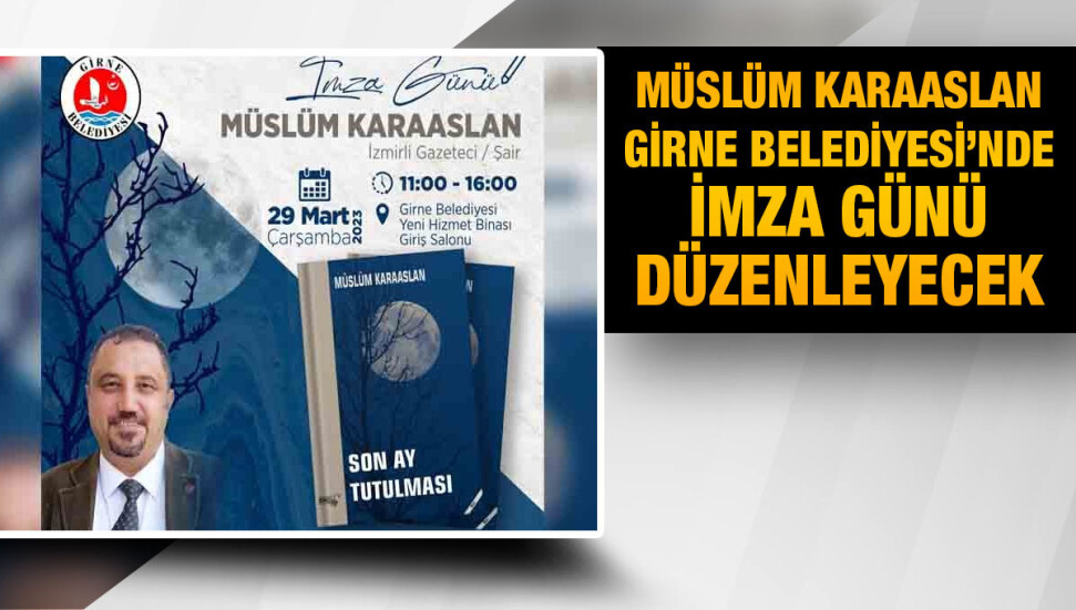 İzmirli Gazeteci ve Şair Müslüm Karaaslan’ın ‘Son Ay Tutulması’ isimli kitabı için Girne Belediyesi’nde Çarşamba günü imza günü düzenleyecek.