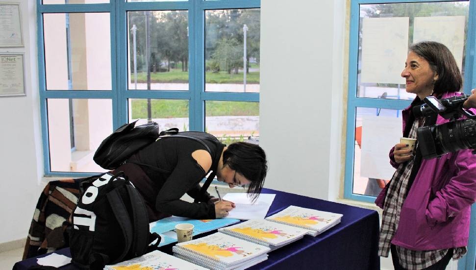 Açılış konuşmalarının ardından söyleşiye geçildi. Söyleşide kitabın editörlüğünü, aynı zamanda projenin de küratörlüğünü yürüten DAÜ Sanat Koordinatörü Zehra Şonya tarafından proje ile ilgili bilgiler ve hedefler aktarıldı. Kitabın yazarı Ceyda Alçıcıoğlu Kozal’ın kitap yazım sürecinden bahsettiği söyleşide, kitabın eğitim danışmanlığını yapan DAÜ Eğitim Fakültesi Öğretim Üyesi Doç. Dr. Eda Yazgın kitabın eğitim bağlamındaki değerlendirmesini yaptı. Söyleşi sonrasında DAÜ Aktivite Müdürlüğü fuaye alanına geçildi. Kitabın yazarı Ceyda Alçıcıoğlu Kozal, katılımcılar tarafından alınan “Sergide Bir Gün” kitaplarını imzaladı.