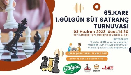 65. Kare Satranç ve Kültür Derneği, Gülgün Süt Mamülleri, Lefkoşa Türk Belediyesi ve Radyo Juke sponsorluğunda, ‘65. Kare 1.Gülgün Süt Satranç Turnuvası’nı 3 Haziran’da düzenliyor.