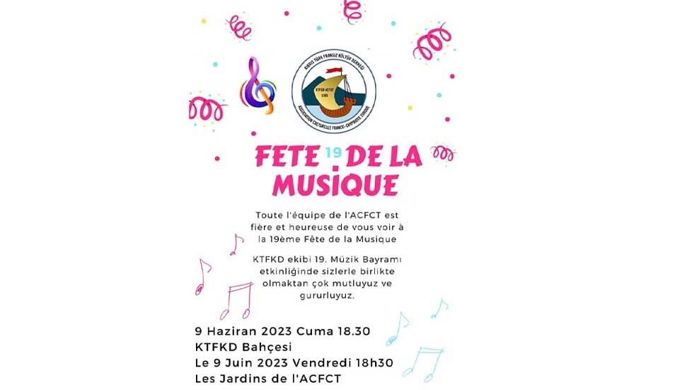Kıbrıs Türk Fransız Kültür Derneği’nin ‘Müzik Bayramı’ etkinliği, profesyonel ve amatör sanatçıların katılımı ile 9 Haziran Cuma günü düzenlenecek.