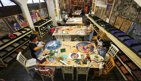 Gastronomi alanında UNESCO'nun "Yaratıcı Şehirler Ağı"nda yer alan Gaziantep'te düzenlenen "GastroANTEP Kültür Yolu Festivali" kapsamında mozaik sanatçılarının yaptığı eserler sergileniyor.