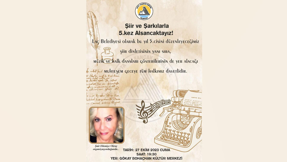 LAÇ Belediyesi’nin 5’incisini düzenleyeceği şiir dinletisi 27 Ekim Cuma akşamı yapılacak.