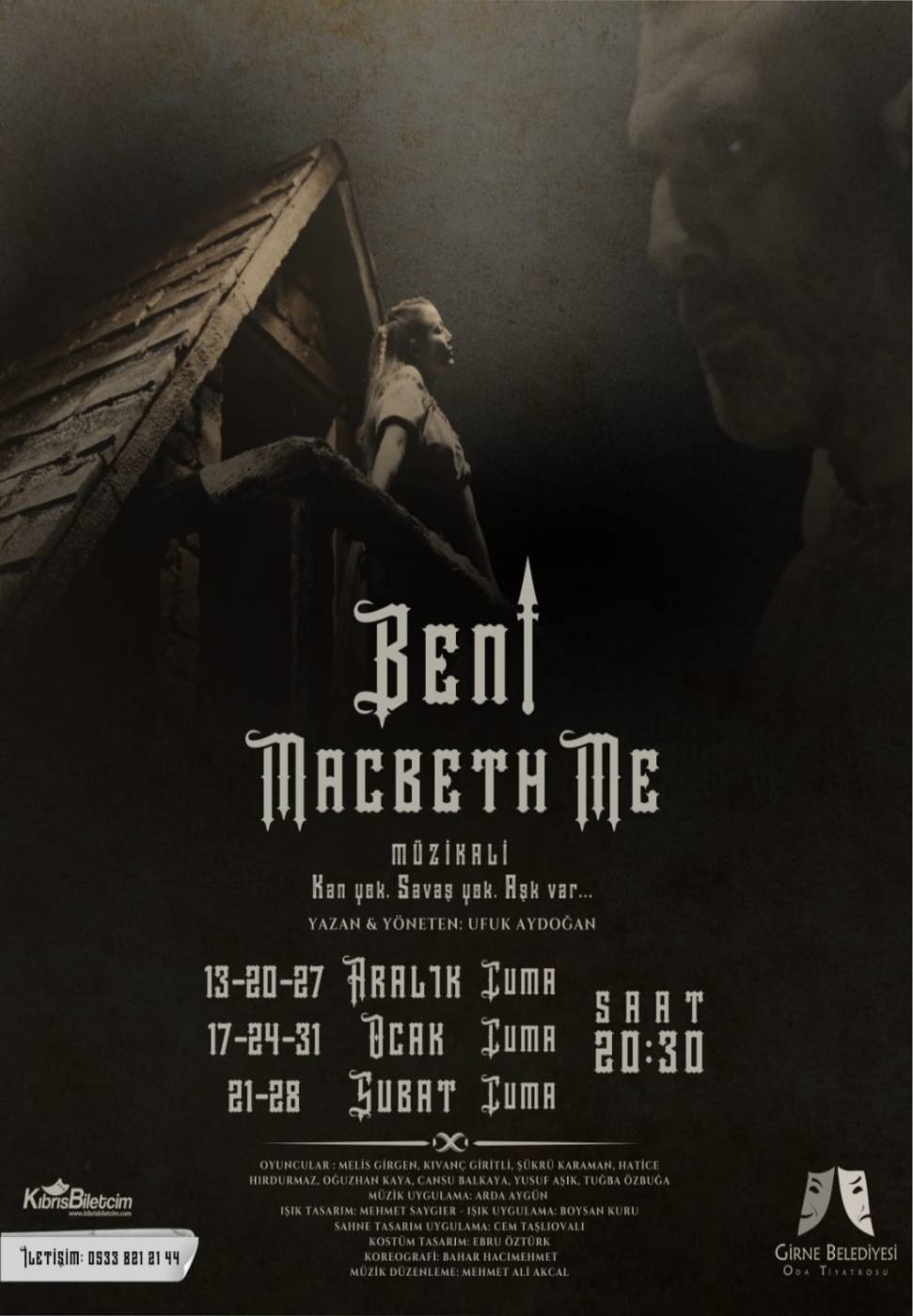 Girne Belediyesi Oda Tiyatrosu tarafından hazırlanan ‘Beni Macbeth Me’ oyunu, 17 Ocak Cuma akşamı saat 20.30'da sahnelenecek.