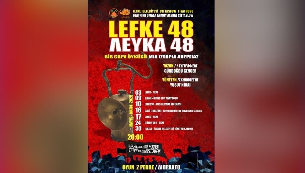 Lefke Belediyesi Cittaslow Tiyatrosu tarafından 3 Mayıs'ta Premier gösterimi yapması planlanan “Lefke 48” isimli bir grev öyküsünün canlandırıldığı oyun, ada genelinde turneye çıkacak.