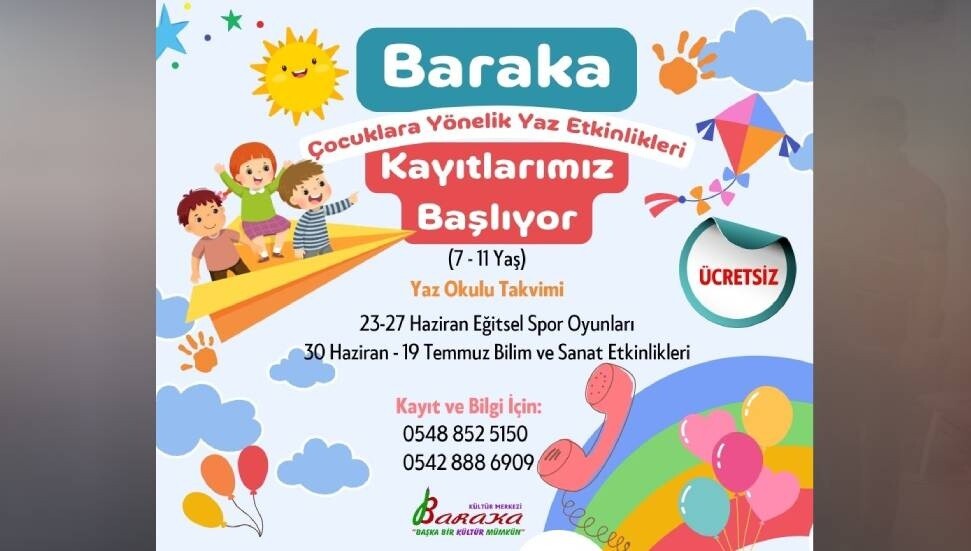Baraka Kültür Merkezi, yaz aylarında ilkokul çocuklarına (7-11 yaş) yönelik yaz etkinlikleri düzenliyor.