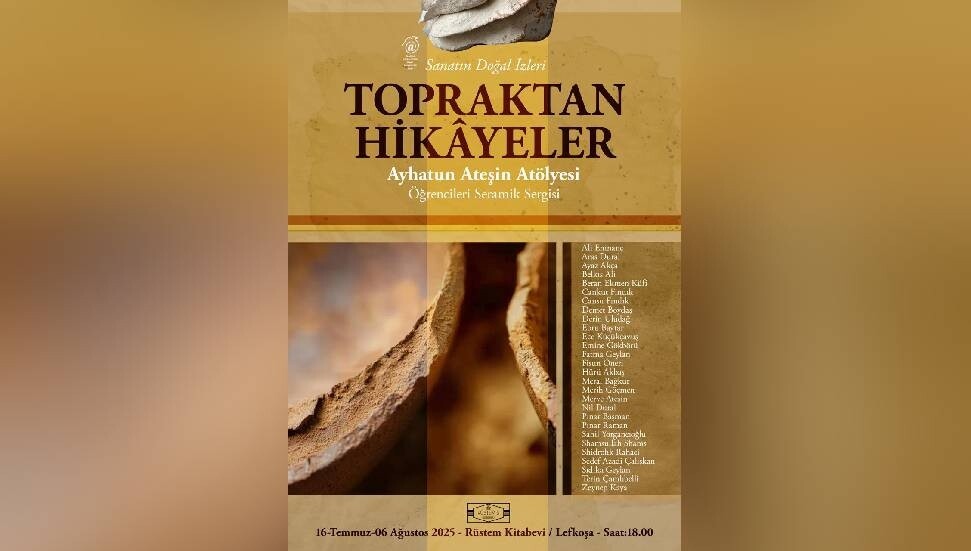 Ayhatun Ateşin Atölyesi öğrencilerinin seramik eserleri, “Topraktan Hikayeler” sergisiyle 16 Temmuz’dan itibaren Rüstem Kitabevi’nde sanatseverlerle buluşuyor.