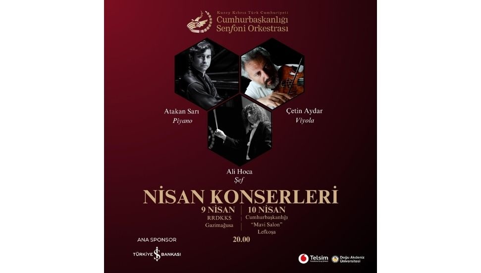 Cumhurbaşkanlığı’ndan verilen bilgiye göre, Şef Ali Hoca yönetiminde; viyolada Çetin Aydar ve piyanoda Atakan Sarı’nın solist olarak yer alacağı konserler, 9 Nisan Perşembe saat 20.00’de Gazimağusa Rauf Raif Denktaş Kültür ve Kongre Sarayı’nda ve 10 Nisan Cuma saat 20.00’de Cumhurbaşkanlığı Mavi Salon’da gerçekleştirilecek.