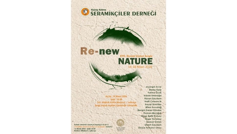 Kuzey Kıbrıs Seramikçiler Derneği’nin Kültür Dairesi katkılarıyla bu yıl on yedincisini gerçekleştireceği sanat etkinliği “Re-Nature”, 13-18 Nisan 2026 tarihleri arasında sanatseverlerle buluşuyor.