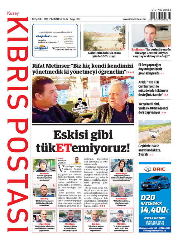 Emin Aksoy: "Et tüketemiyoruz, belimiz büküldü" "Maalesef et tüketemiyoruz. Her şey çok pahalı oldu, dolayısıyla et fiyatları da çok pahalı oldu. Eskiden et fiyatları ucuz olduğu için rahatça alabiliyorduk, ancak şimdi her şey iki katı pahalı oldu. Belimiz büküldü. Alamıyoruz. Hükümet bu konuda adım atmalı bence. Gelecekte et fiyatlarının inebileceğine dair umudum var, ama çok değil, az iner" |
