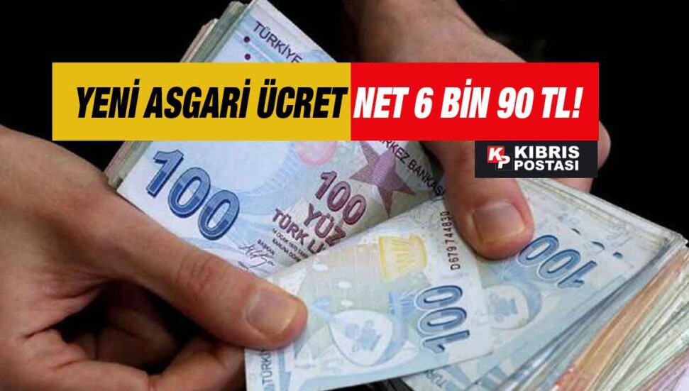 Yeni asgari ücret net 6 bin 90 TL, brüt 7 bin TL olarak belirlendi.
