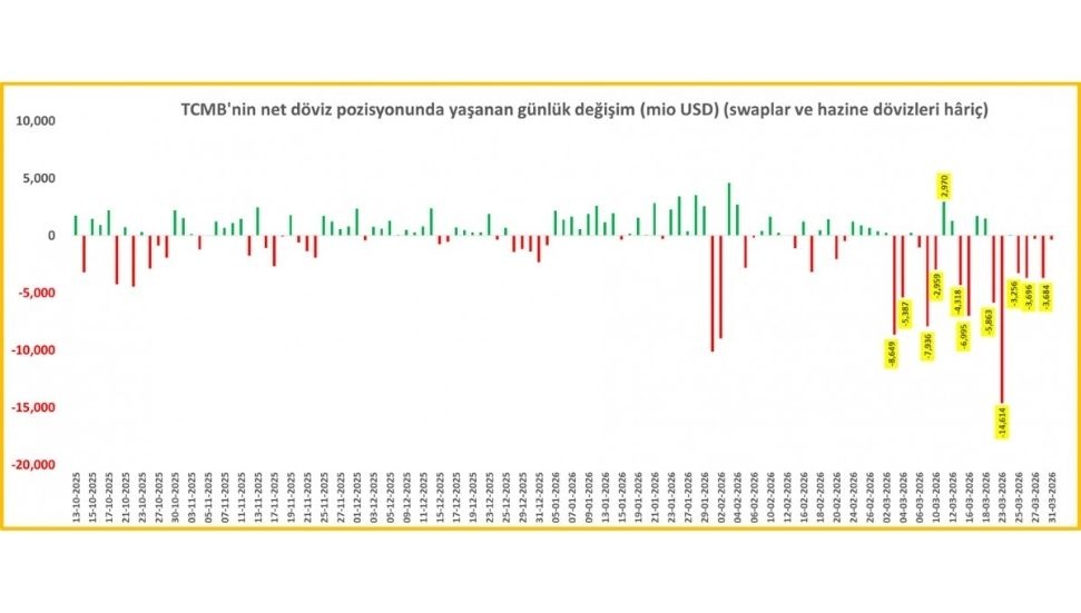 TCMB Net Döviz Pozisyonunda Yaşanan Günlük Değişim