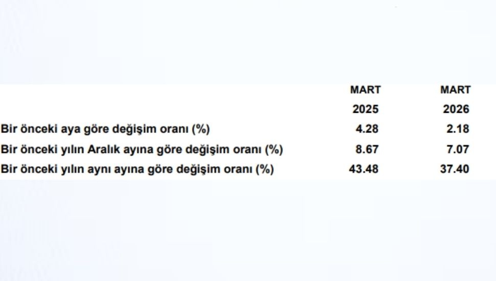 İstatistik Kurumu’nun, tüketici fiyatlarındaki gelişmeleri izlemek amacıyla önceden seçilmiş perakende satış yerlerinden derlediği fiyatlara göre her ay yayımladığı 2015=100 Temel Yıllı Tüketici Fiyat Endeksi’nde, Mart 2026’da bir önceki aya göre yüzde 2.18, bir önceki yılın Aralık ayına göre yüzde 7.07 ve bir önceki yılın aynı ayına göre yüzde 37.40 değişim gerçekleşti.