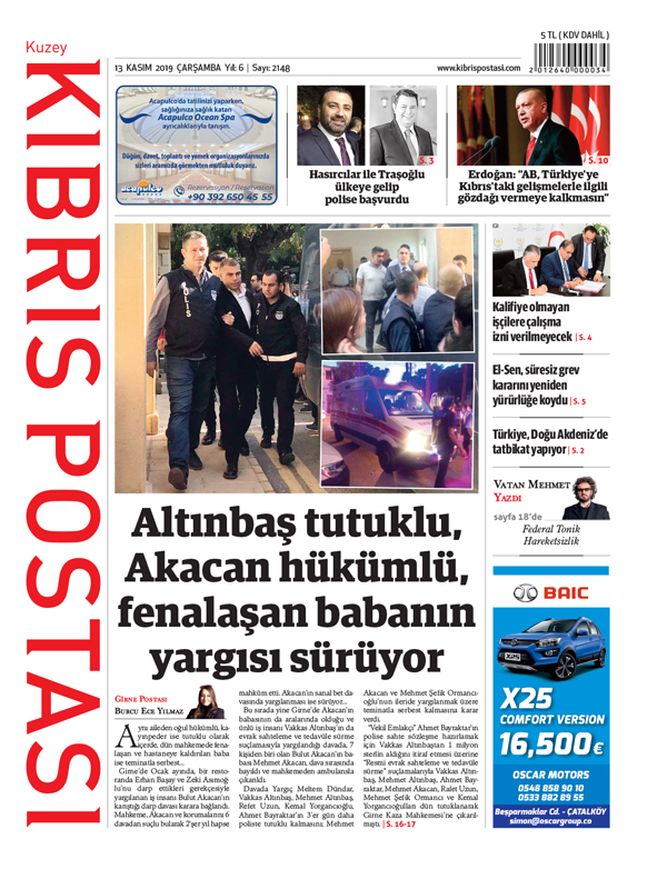 Sahte evrak meselesiyle ilgili yürütülen dava zanlıları Vakkas Altınbaş, Mehmet Altınbaş, Ahmet Bayraktar, Mehmet Akacan, Refet Uzun, Mehmet Şefik Ormancı ve Kemal Yorgancıoğulları dün ek tutukluluk talebiyle Girne Kaza Mahkemesi'ne çıkarıldı. Zanlı Mehmet Akacan, mahkeme salonunda aniden rahatsızlanarak fenalık geçirdi. Akacan'ın ambulansla hastaneye kaldırılmasının ardından mahkemeye bir süre ara verildi.