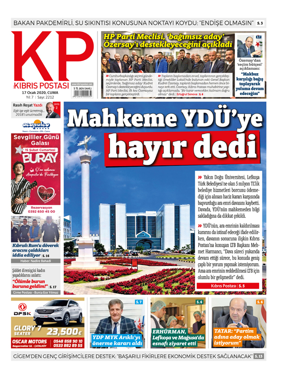 Yakın Doğu Üniversitesi, Lefkoşa Türk Belediyesi’ne olan yaklaşık 5 Milyon TL’lik beledi borcunu ödemediği için alınan haciz kararı karşısında başvurduğu ara emri davasını kaybetti.