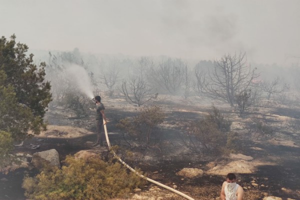 Polisin söz konusu yangın ile ilgili zarar tespiti ve çalışmaları devam ederken, bölgede dikili yüzlerce ağacın yanarak küle döndüğü görüldü.
