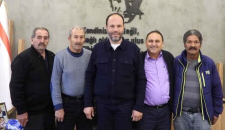 İskele Belediye Başkanı Hasan Sadıkoğlu, Ötüken köyü muhtarı Turgut Özyöre ve azaları kabul etti.