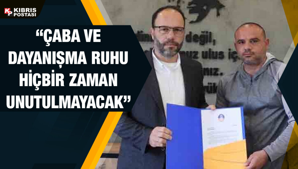İskele Belediye Başkanı Sadıkoğlu, İskele Belediyesi personeli Halil Kızıl’a takdim ettiği teşekkür belgesi sırasında ise şu ifadelere yer verdi: