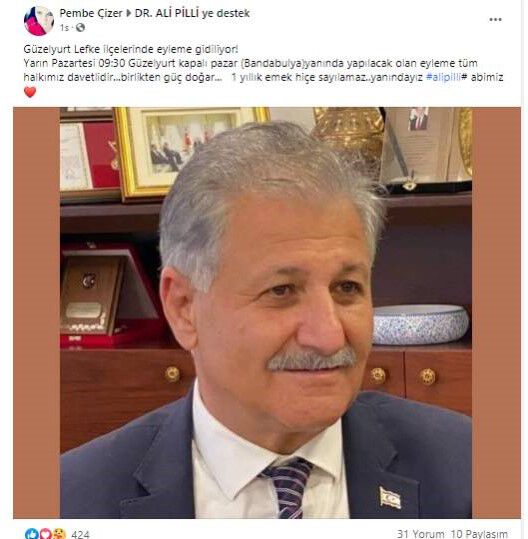 UBP Güzelyurt Milletvekili Ali Pilli’nin, Sağlık Bakanlığı görevinden alınmasının ardından Facebook üzerinden “Ali Pilli’ye destek kampanyaları” başlatıldı.