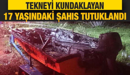 Güneşköy’de yol kenarında bulunan tekneyi kundaklayan şahıs tutuklandı