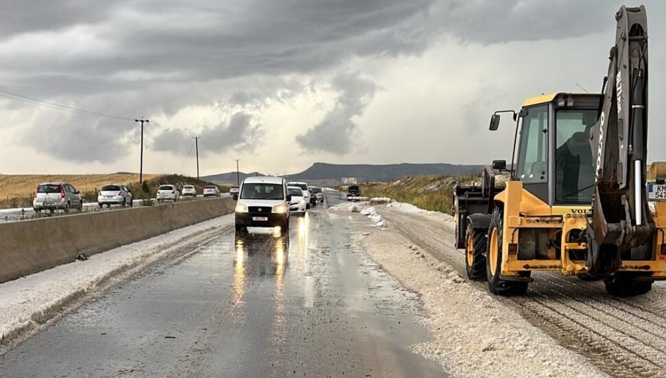 Polis Basın Subaylığı, Lefkoşa- Güzelyurt ana yolunda etkili olan dolu yağışı sonrası yolda iş araçlarıyla temizlik yapıldığını bildirdi.