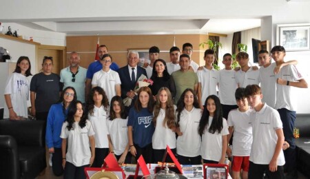 Güzelyurt Belediye Başkanı Mahmut Özçınar, Şampiyon Melekler Yıldızlar Atletizm Final Yarışları’nda şampiyon olan Şehit Turgut Ortaokulu kız ve erkek takımlarını tebrik etti.