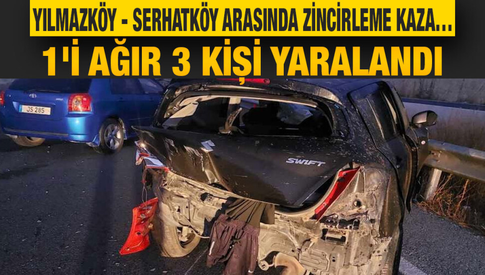 Lefkoşa - Güzelyurt ana yolunda (Yılmazköy - Serhatköy arası) bu sabah meydana gelen zincirleme trafik kazasında 1'i ağır 3 kişi yaralandı.