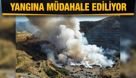 Lefke çöplüğünde meydana gelen yangına itfaiye ekipleri müdahale ediyor.