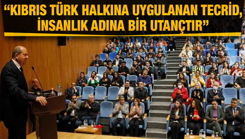 Cumhurbaşkanı Ersin Tatar, Lefke Avrupa Üniversitesi Hukuk Fakültesi Konferans Salonu’nda “Kıbrıs Türk Mücadele Tarihi ve Kıbrıs Konusundaki Son Gelişmeler” konulu bir konferans verdi. Konferansta konuşan Tatar, “Kıbrıs her zaman Türk dünyasının yaşamında olacaktır. Kıbrıs bir değerdir” açıklamasında bulundu.