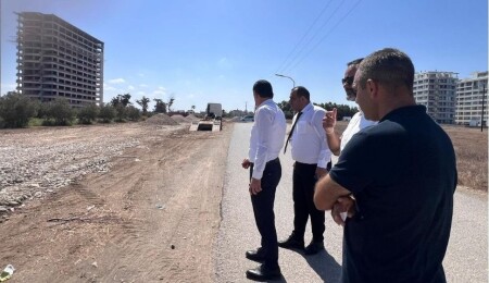 İçişleri Bakanı Dursun Oğuz, Gaziveren’i ziyaret ederek yürütülen çalışmaları Lefke Kaymakamı Savaş Orakçıoğlu, Bakanlık Müsteşarı Hüseyin Gültekin ve köy muhtarı Zekiye Akarsular ile birlikte yerinde inceledi.