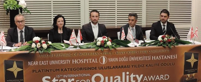 Yakın Doğu Üniversitesi, Kıbrıs (Near East University,Cyprus) Basın ve Halkla İlişkiler Dairesi Müdürlüğü'nden yapılan açıklamaya göre; YDÜ Hastanesi'ne CERN yüksek enerji fiziği laboratuarı ile Birleşmiş Milletler'in Avrupa'daki merkezine ev sahipliği yapan ve ayrıca Dünya Sağlık Örgütü (WHO), Uluslararası Kızılhaç Komitesi'nin mekezinin bulunduğu İsviçre'nin Cenevre kentinde uluslararası katılımla gerçekleştirilen törenle Platinyum Kategorisinde Yıldız Kalite Ödülü verildiği belirtildi.