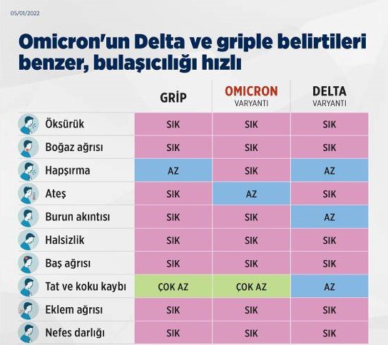 Koronavirüsün Delta ve Omicron varyantı ile son zamanlarda sıkça görülen influenza (grip) virüsünün belirtileri birbirine oldukça benziyor.