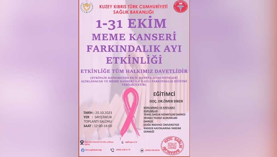 Sağlık Bakanlığı, “1-31 Ekim Meme Kanseri Farkındalık Ayı” dolayısıyla yarın 12.00 – 14.00 saatleri arasında Sayıştay Toplantı Salonu’nda etkinlik düzenleyecek.