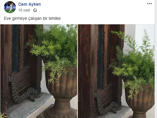 Girne sakini Cem Ayken yılanın eve girmeye çalıştığı anları sosyal medya üzerinden paylaşarak korku dolu anları gözler önüne serdi.