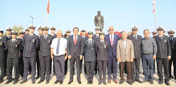 Girne Şehir Merkezi'nde düzenlenen, 10 Kasım Atatürk'ü Anma Programına katılan GAÜ Denizcilik Öğrencileri ve Akademisyenleri, törende, Atatürk Büstü'ne Saygı Duruşu ve Selamı vererek çelenk bıraktı.