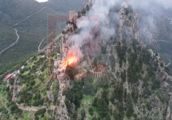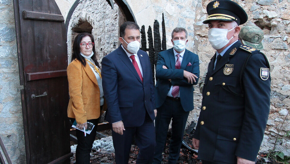 Başbakan Ersan Saner ile Başbakan Yardımcısı Ekonomi ve Enerji Bakanı Erhan Arıklı, dün yıldırım düşmesi sonucu çıkan yangında zarar gören St. Hilarion Kalesi’nde incelemelerde bulundu.