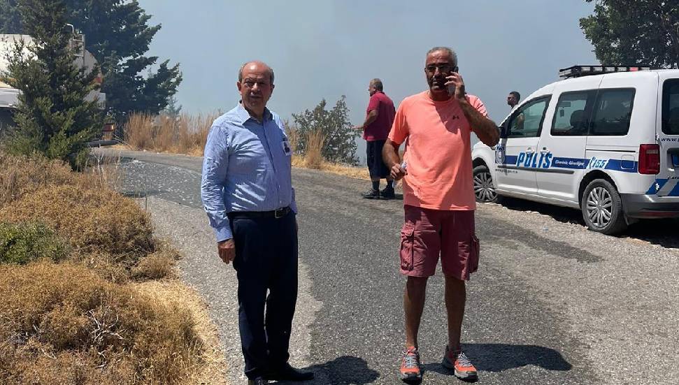 Cumhurbaşkanı Ersin Tatar ve Başbakan Ersan Saner, yangın yerine gelerek, yetkililerden bilgi almış, helikopter ile yangın bölgesini havadan incelemişti.