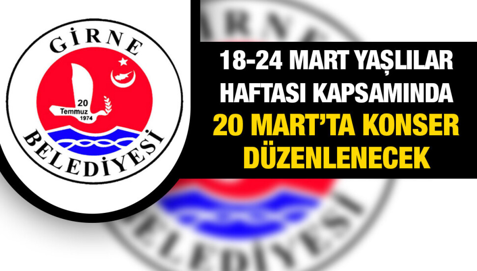 Girne Belediyesi Sosyal İşler Şubesi’nden yapılan açıklamaya göre, Şef İhsan Gürel yönetimindeki Girne Belediyesi Türk Sanat Müziği Topluluğu, 18-24 Mart Yaşlılar Haftası kapsamında 20 Mart’ta konser verecek.