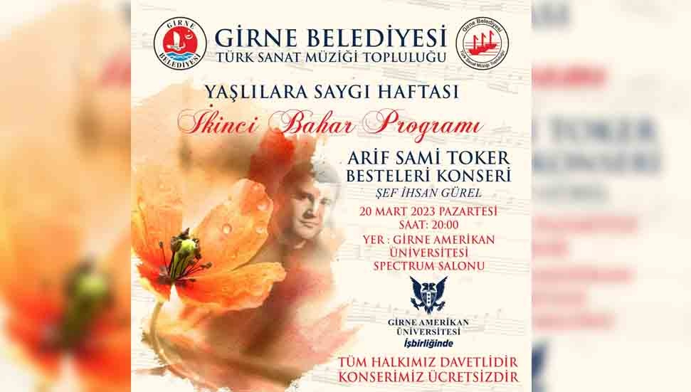 Girne Belediyesi Türk Sanat Müziği Topluluğu, İkinci Bahar Programı kapsamında “Yaşlılar Haftası” nedeniyle 20 Mart'ta konser düzenliyor.