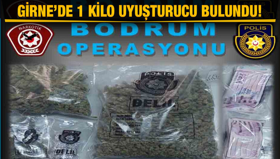 Girne’de polis tarafından düzenlenen “Bodrum Operasyonu”nda 1 kilodan fazla uyuşturucu ve satışından elde edildiğine inanılan 32 bin 400 TL para bulundu, 1 kişi tutuklandı.