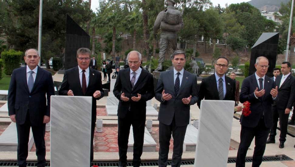 UBP Genel Başkanı ve Başbakan Ünal Üstel, AK Parti Genel Başkan Vekili Efkan Ala ile Yeni Azerbaycan Partisi Genel Başkan Yardımcısı Tahir Budagov ve heyetleri şehitliğe çiçek bırakarak, dua etti.