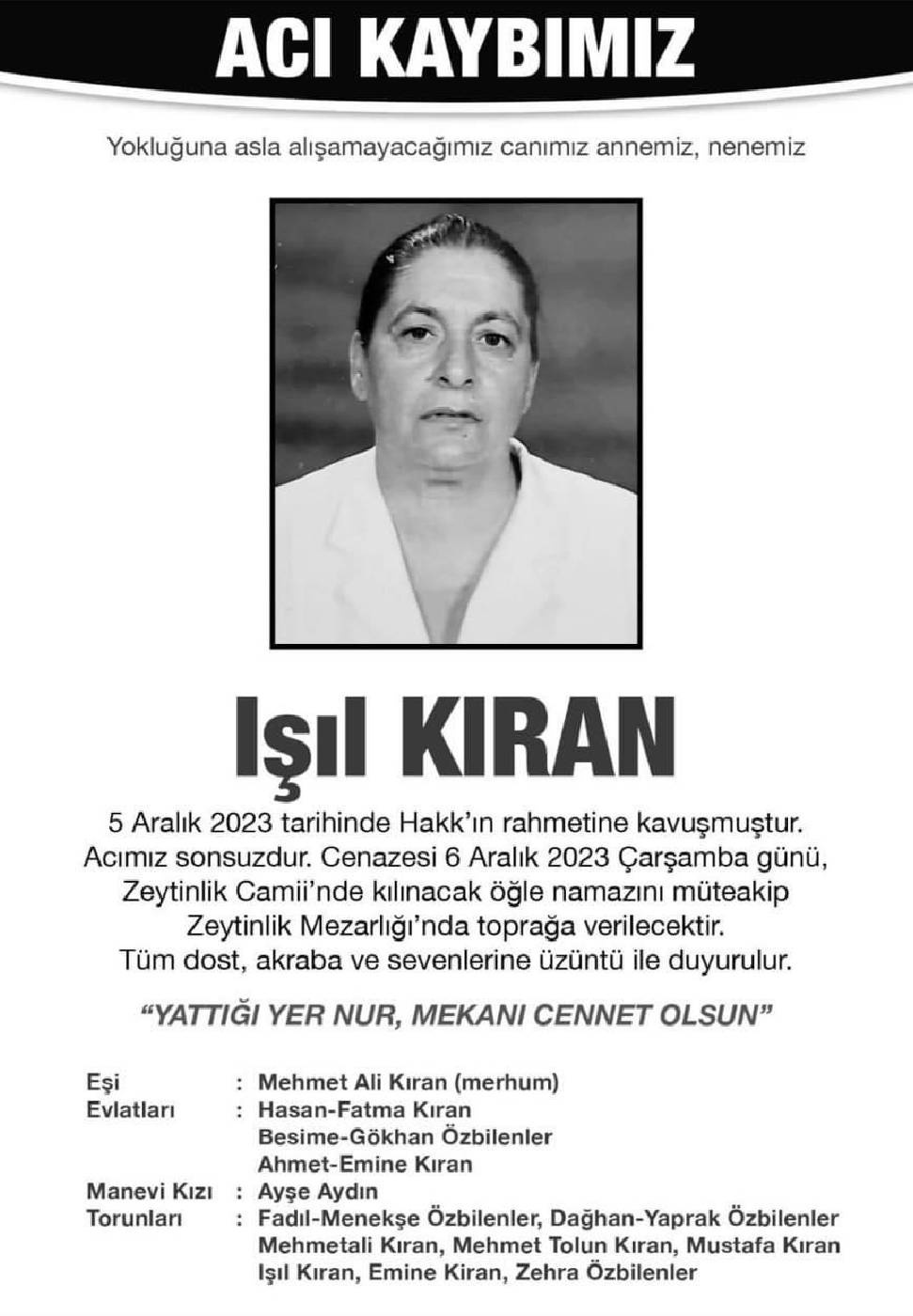 Girne sakinlerinden Işıl Kıran yaşamını yitirdi.