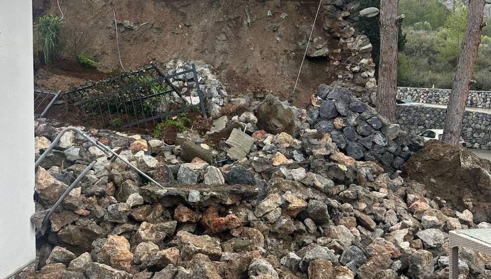 Geçtiğimiz gün ülke genelinde etkili olan aşırı yağışlar, Bellapais'te bir sitenin istinat duvarının çökmesine neden oldu. Gece saatlerinde meydana gelen olayda, istinat duvarı büyük bir gürültüyle çöktü.