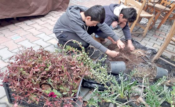 12 yaşındaki Beyazıt Sürücü ise İyilik Evi'nde bu tip aktiviteler yaparken çok mutlu olduklarını ifade ederek, "Saksıları İyilik Evi'ne götürdük, toprakla doldurduk ve suladık. Ardından da getirip astık" dedi.