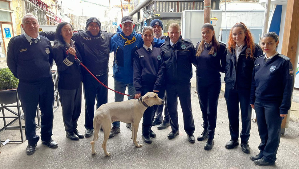 Metin Feyzioğlu’na sabah yürüşü ve esnaf ziyaretleri sırasında köpeği Tontik de eşlik etti.