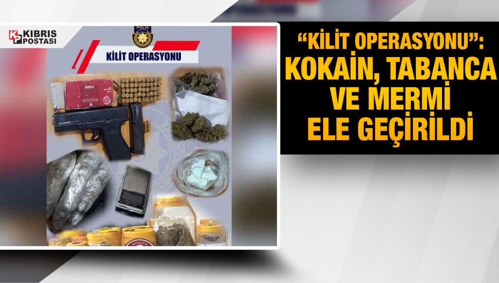 Polis Basın Subaylığı’ndan yapılan açıklamaya göre, Güney Kıbrıs’tan gelerek, KKTC’ye geçiş yapmak isteyen 50 yaşındaki K.S.’nin kullanımında bulunan araçta Narkotik ve Kaçakçılığı Önleme Müdürlüğü ekipleri tarafından “Kilit Operasyonu” kapsamında yapılan aramada, yaklaşık 100 gram ağırlığında “Kokain” türü uyuşturucu madde bulundu. Akabinde de bahse konu şahsın kalmakta olduğu ikametgahında yapılan aramada ise, yaklaşık 340 gram “Hintkeneviri” ile yaklaşık 16 gram “Kokain” türü uyuşturucu maddeler ile bir adet tabanca ve 53 adet canlı mermi ele geçirildi.
