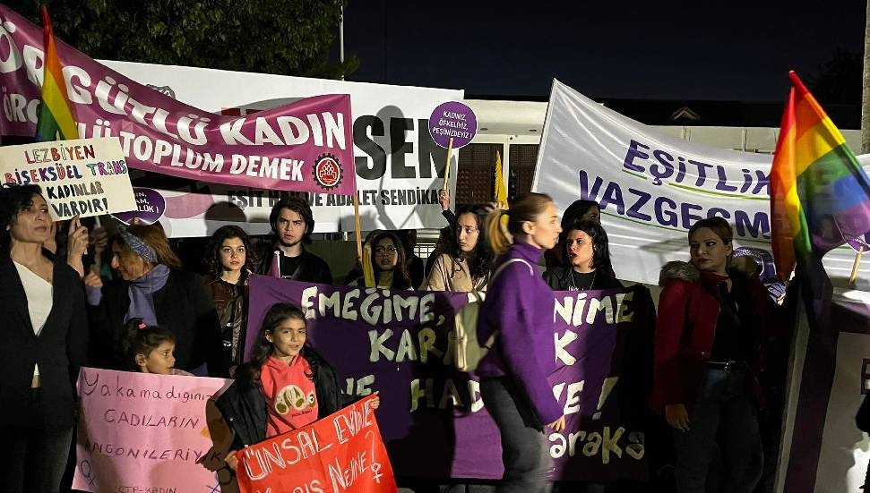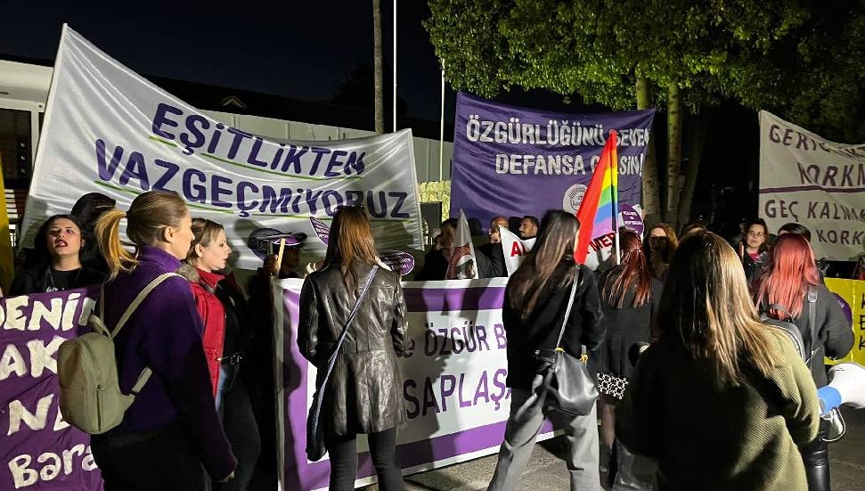 Yürüyüşe katılmak üzere saat 17.30’da Kumsal Park’ta toplanan kitle, “Eşitlikten vazgeçmiyoruz”; “Susmuyoruz, korkmuyoruz, itaat etmiyoruz”; “Yakamadığınız cadıların angonileriyiz”; “Özgürlüğünü seven defansa gelsin”; “Erkek şiddetine son”; “Çiçek değil, eşitlik”; “Gericilikten korkma, geç kalmaktan kork”; “Eşit ve özgür bir yaşam için hesaplaşacağız” yazılı pankartlar taşıdı. KTOEÖS Yönetim Kurulu Üyesi Çağrı Arslan, Meclis önünde örgütlerin ortak basın açıklamasını okudu.